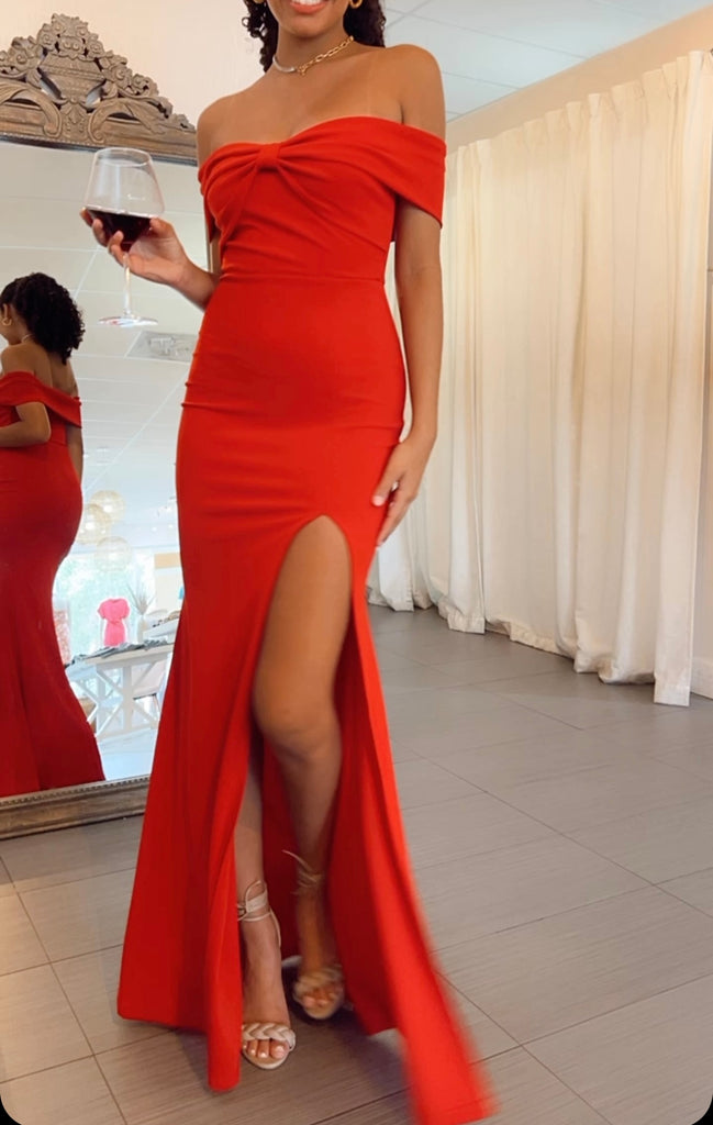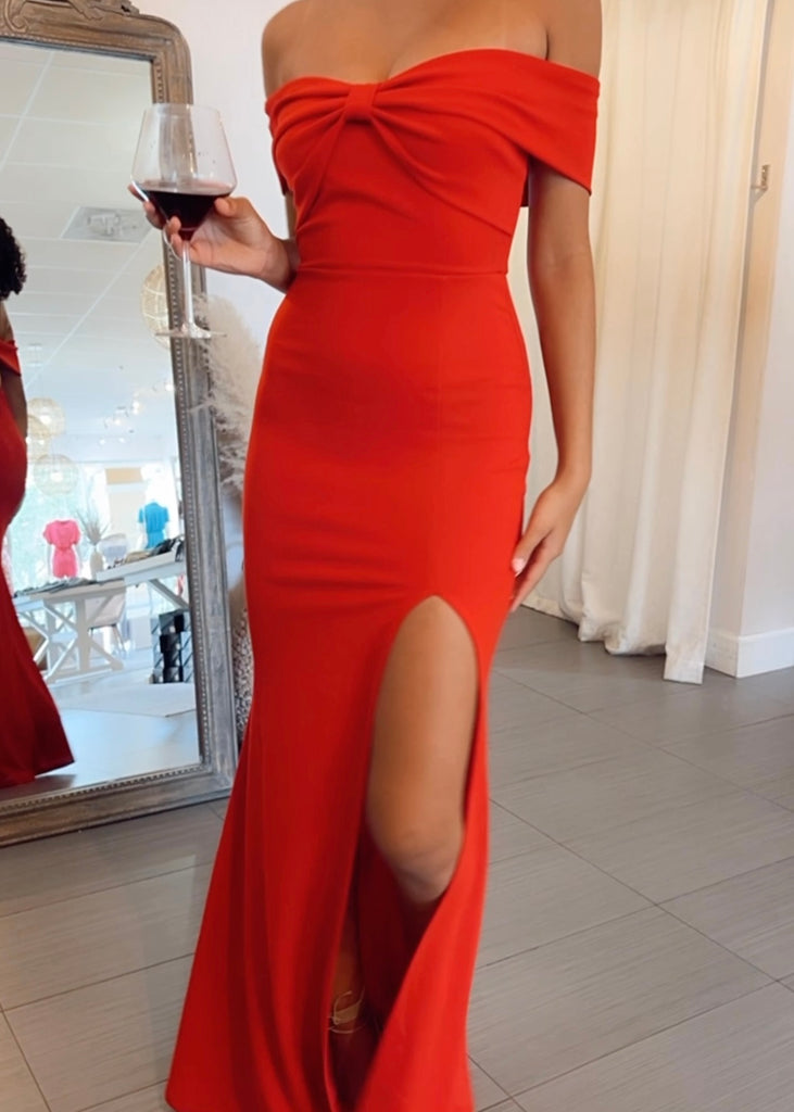 Dress to impress in our gorgeous Gianna gown. It features an off the shoulder neckline in a soft stretchy fabric