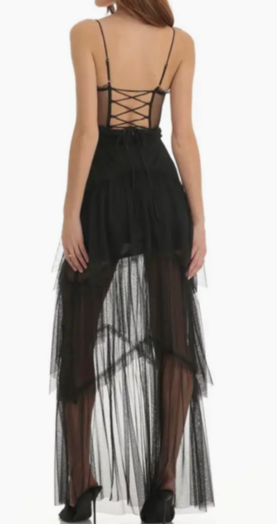 Make an entrance in our Mesh Detail Maxi Dress — a true statement piece. Featuring a sheer mesh overlay with partial lining, this stunning dress is designed with adjustable shoulder straps and a strappy open back for the perfect mix of elegance and edge. Flattering yet daring, it’s made to turn heads at any event. Runs small — we recommend sizing up for the best fit.