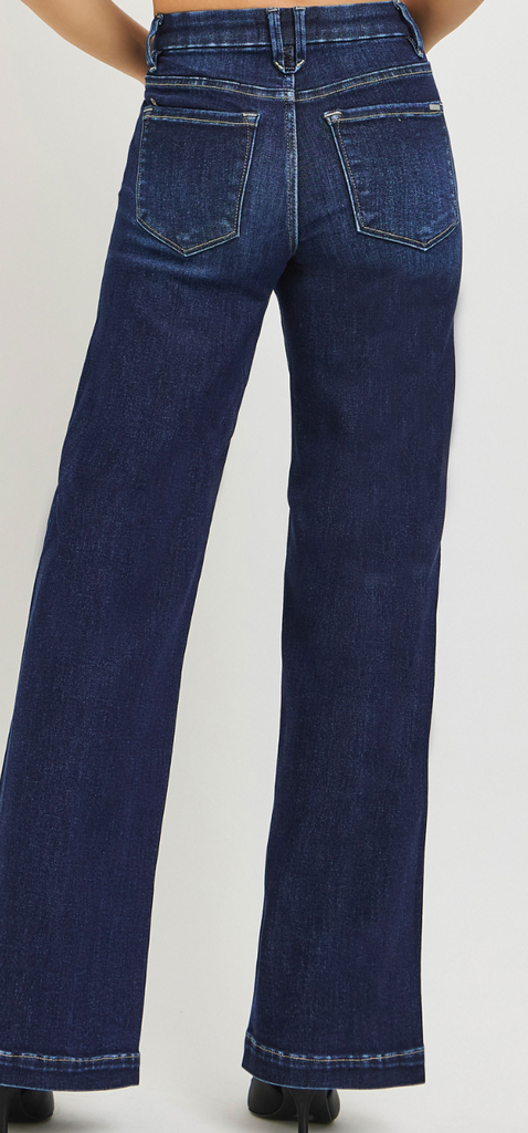 TUMMY CONTROL MID RISE WIDE LEG JEANS - Rise 9 1/2" | Inseam 32 1/2" in size 26 - Model Info: Height 5'7.5" | Waist 25" | Hips 35" - Model is wearing size 25